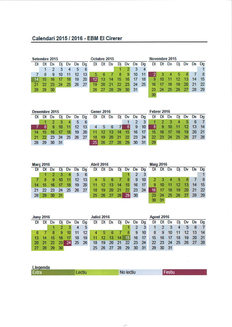 CALENDARI ACTUALITZAT DEL CURS.
